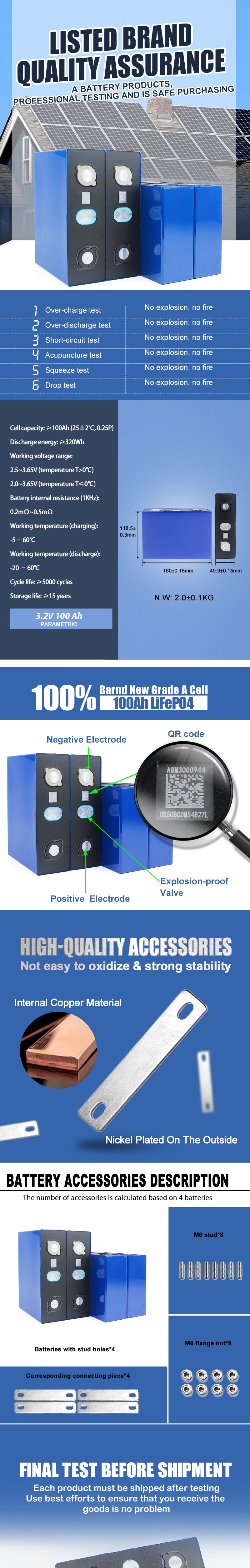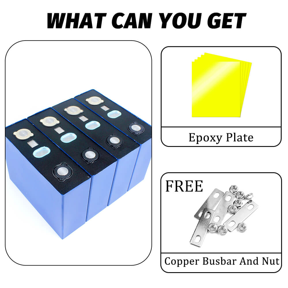 The Lifepo4 CALB 3.2V 100Ah battery are original brand new cell with clear QR code. For easy assemble, we will weld M6 studs on the cell. Each battery will send 1 pcs copper busbar and 2 pcs nuts. The price to European countries are include custom clearance and tax.