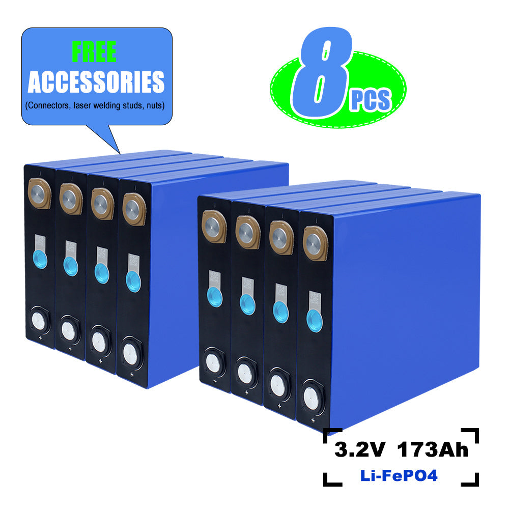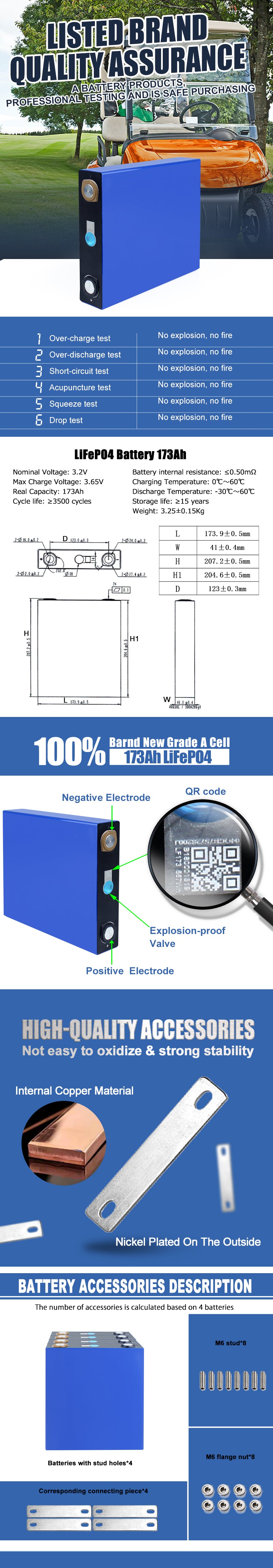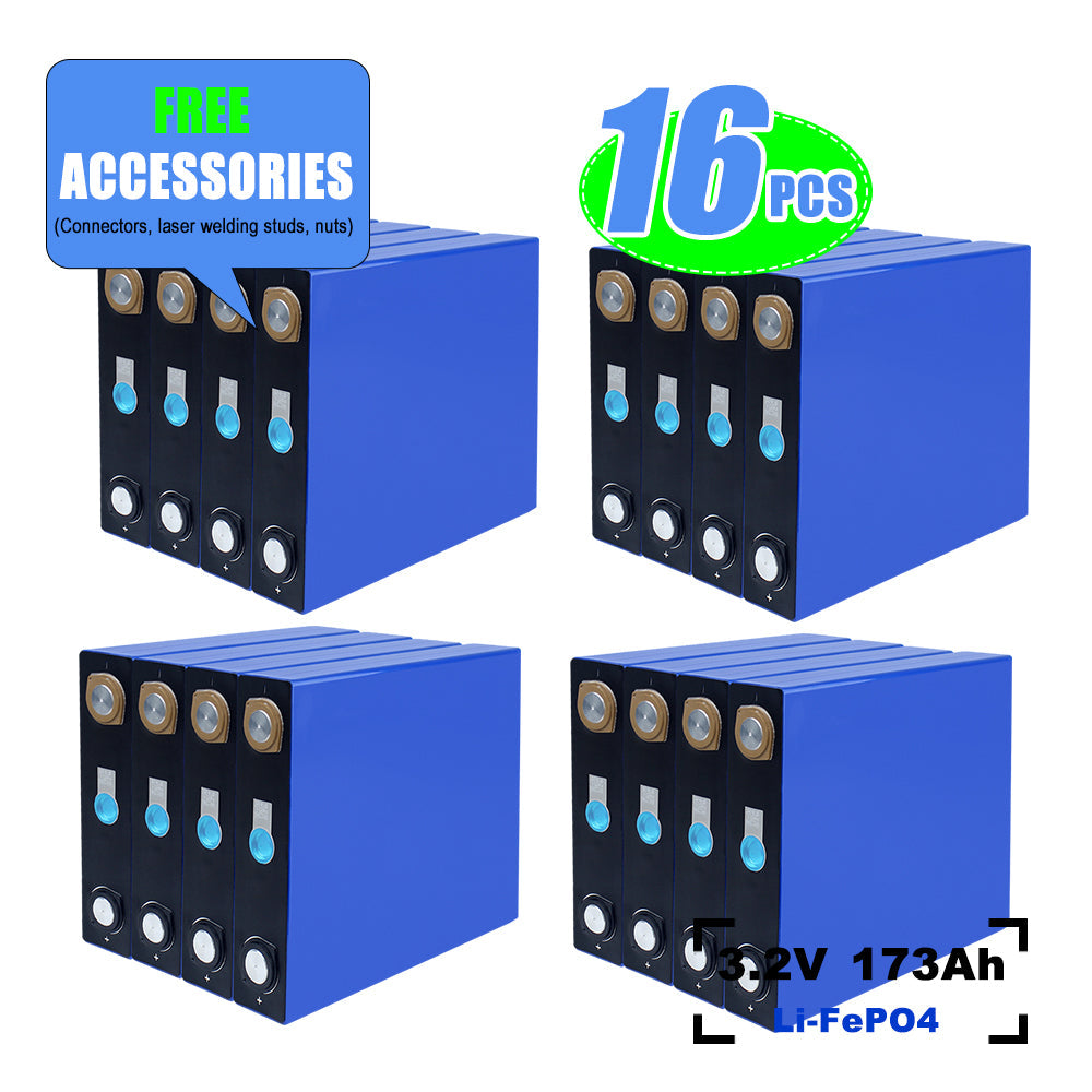 The Lifepo4 EVE 3.2V 173Ah battery are original brand new cell with clear QR code. For easy assemble, we will weld M6 studs on the cell. Each battery will send 1 pcs copper busbar and 2 pcs nuts. The price to European countries are include custom clearance and tax.