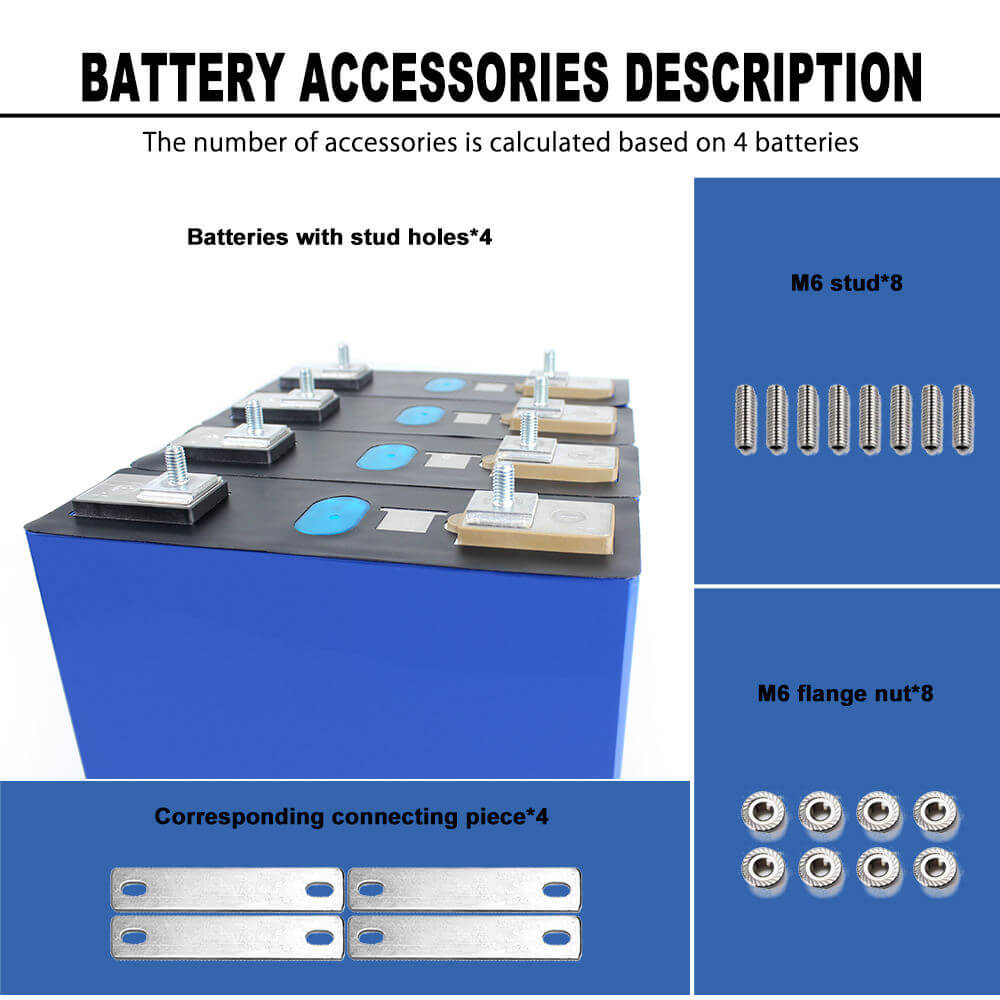Note: The Lishen Lifepo4 3.2V 202Ah battery are original Lishen Grade A brand new cell with clear QR code. For easy assemble, we will weld M6 studs on the cell. Each battery will send 1 pcs copper busbar and 2 pcs nuts. The price to European countries is include custom clearance and tax.