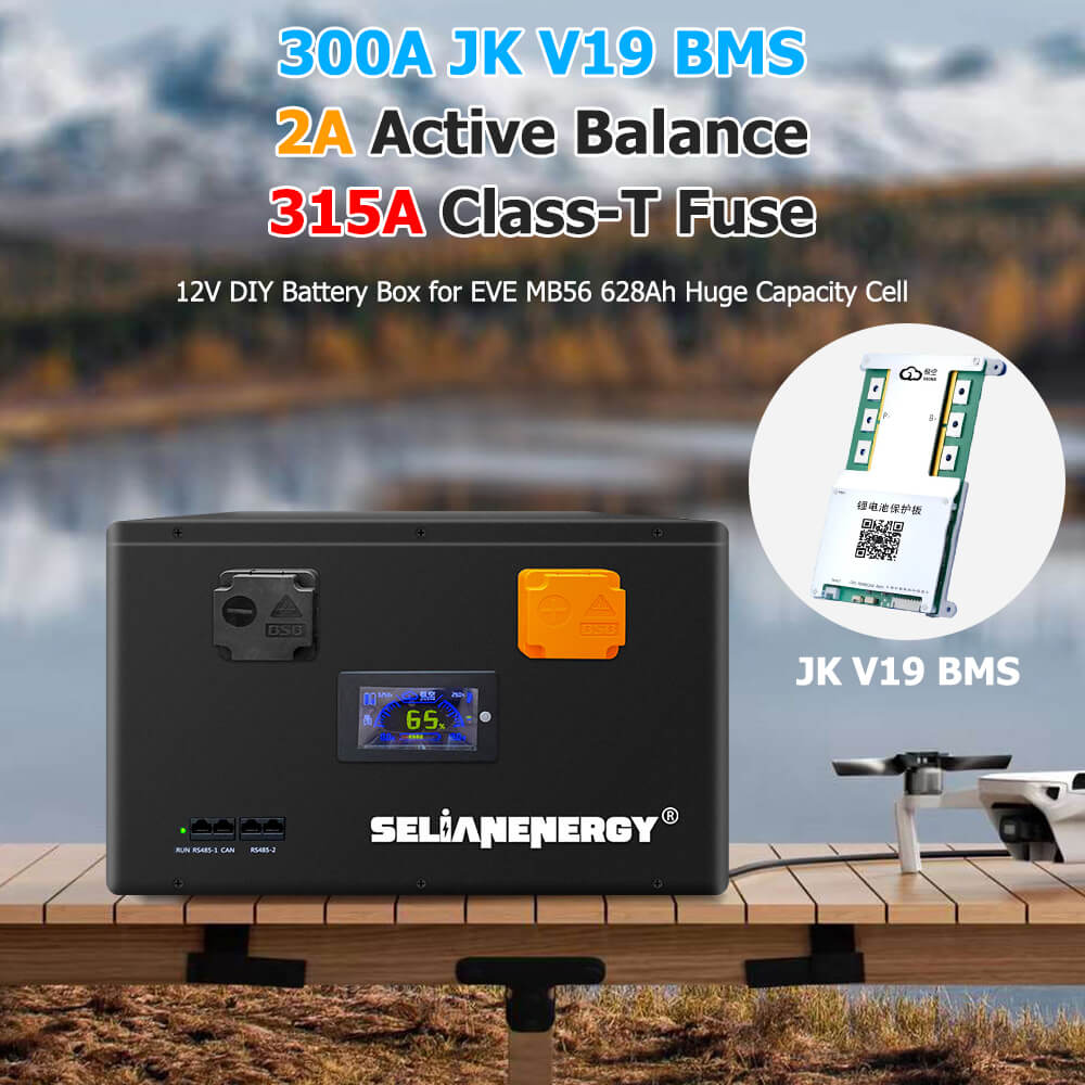 JK Smart BMS 300A protection on 12V 8kWh solar battery pack